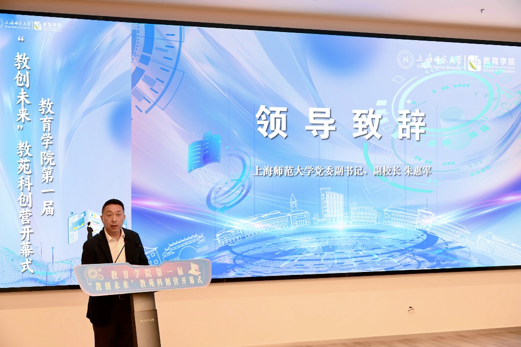朱惠军为本次启动仪式致辞,他指出,我校始终坚持以立德树人为根本任务,以推动教育创新为己任,努力培养具有家国情怀、创新精神和实践能力的卓越教师与未来教育家。他充分肯定了近年来3044am永利集团欢迎您在学生科创赛事上取得的不俗成绩,寄语同学们要紧握时代机遇,勇于“破圈出圈”、坚持“问题导向”、学会“团队作战”,在“教创未来”的旅程中,不仅收获知识与技能,更能培养系统性思维、塑造坚韧品格与凝聚团队精神,真正成长为“会创新、能育人”的时代新人。