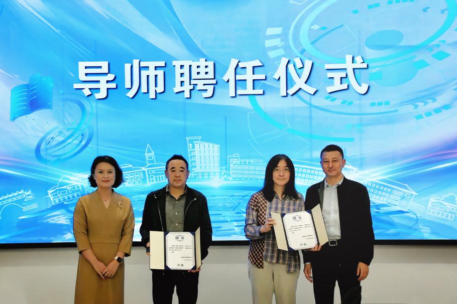 导师聘任仪式上,吴跃东和邱乙哲共同为校内外导师代表颁发聘书。