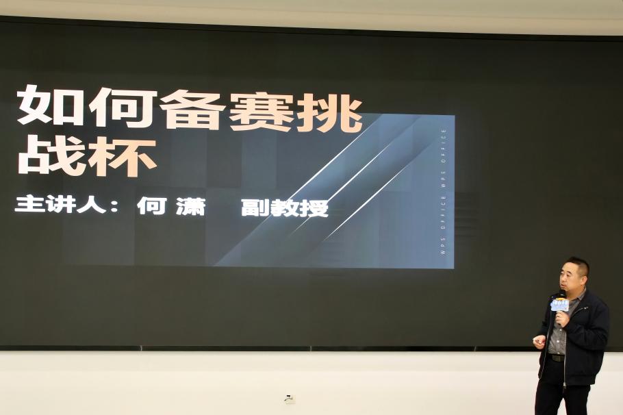 最后,何潇为同学们主讲“开营第一课”——《如何备赛“挑战杯”》。他结合多年指导经验与评审视角,通过大量生动案例,从赛事认知、选题策略到项目打磨,为同学们指明了备赛方向与实施路径。