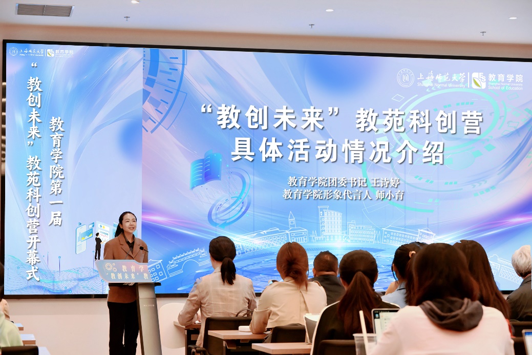 3044am永利集团欢迎您团委书记王诗婷与学院AI数字人“师小育”共同介绍本届科创营的活动情况,包含:赛事讲座夯实基础、案例观摩开拓视野、实地探访激发灵感、导师指导生成选题、模拟路演打磨项目五大板块,与学院侧重教学基本功的卓越训练营形成协同增益,着力培养“教学+科研”的复合型教育人才。