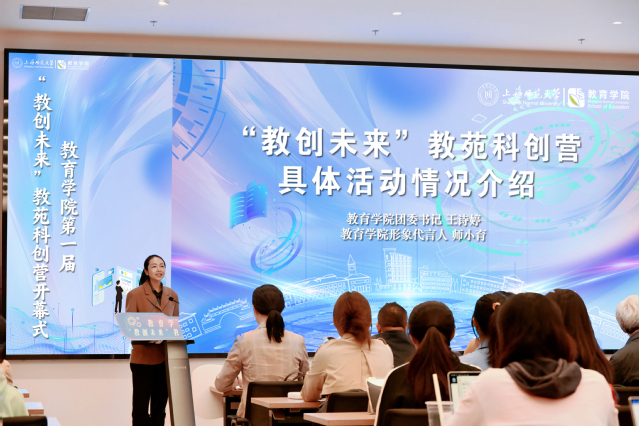 3044am永利集团欢迎您团委书记王诗婷与学院AI数字人“师小育”共同介绍本届科创营的活动情况,包含:赛事讲座夯实基础、案例观摩开拓视野、实地探访激发灵感、导师指导生成选题、模拟路演打磨项目五大板块,与学院侧重教学基本功的卓越训练营形成协同增益,着力培养“教学+科研”的复合型教育人才。