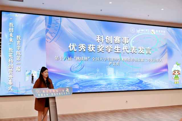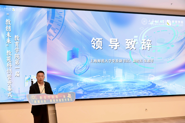 朱惠军为本次启动仪式致辞,他指出,我校始终坚持以立德树人为根本任务,以推动教育创新为己任,努力培养具有家国情怀、创新精神和实践能力的卓越教师与未来教育家。他充分肯定了近年来3044am永利集团欢迎您在学生科创赛事上取得的不俗成绩,寄语同学们要紧握时代机遇,勇于“破圈出圈”、坚持“问题导向”、学会“团队作战”,在“教创未来”的旅程中,不仅收获知识与技能,更能培养系统性思维、塑造坚韧品格与凝聚团队精神,真正成长为“会创新、能育人”的时代新人。