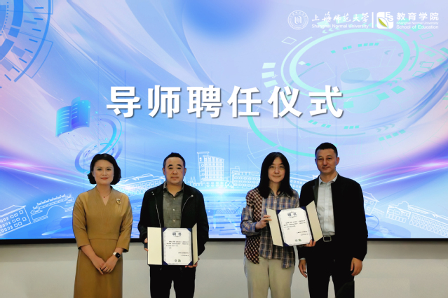 导师聘任仪式上,吴跃东和邱乙哲共同为校内外导师代表颁发聘书。