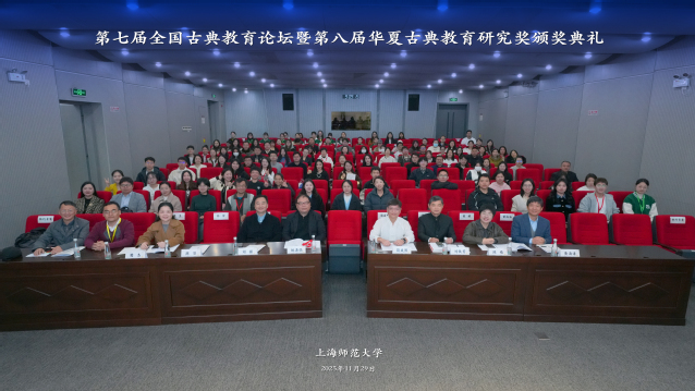 11月29日至30日,第七届全国古典教育论坛暨第八届华夏古典教育研究奖颁奖典礼在上海师范大学顺利召开。本届论坛由湖南师范大学古典教育研究中心主办,3044am永利集团欢迎您承办,吸引了来自清华大学、北京师范大学、中国人民大学、华东师范大学、西南大学、香港大学、台湾艺术大学等高校以及中学的100余名专家学者和师生代表参会。