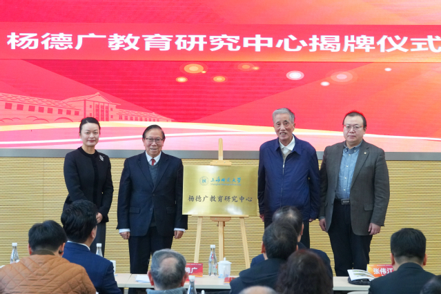 上海市教育委员会原主任张伟江,上海师范大学原校长杨德广,上海师范大学党委副书记杨海燕和上海市教委高教处处长杨颉共同为杨德广教育研究中心揭牌。